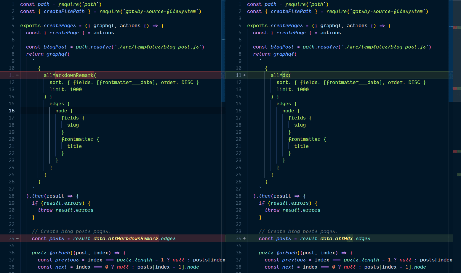 First up we’re going to need to change gatsby-node.js this is where